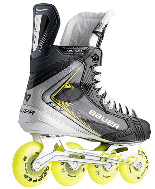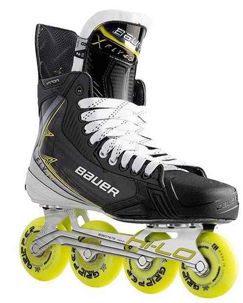 Comfort is also an important part of the Bauer Vapor Fly40 Inline Roller Hockey Skate Intermediate. The sublimated liner offers a comfortable interior feel, while the Pro Stock 40oz felt tongue adds classic comfort and a reliable fit. The CNC aluminum chassis completes the setup with a durable and direct connection between the boot and the surface.