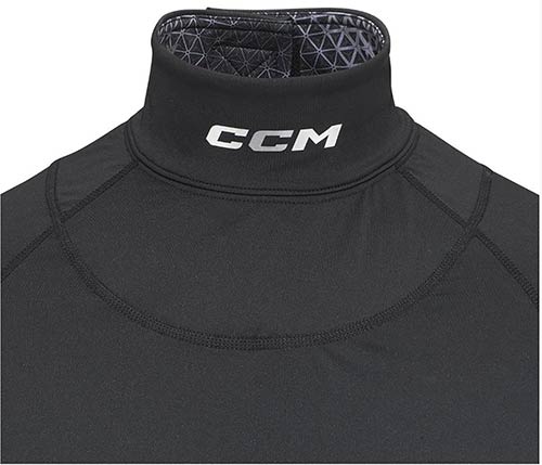 Maximum safety and outstanding comfort make the CCM Long Sleeve with integrated Neck Guard Junior Black the ideal protective shirt for young players. The built-in neck protection is BNQ and CE certified, ensuring reliable safety on the ice.